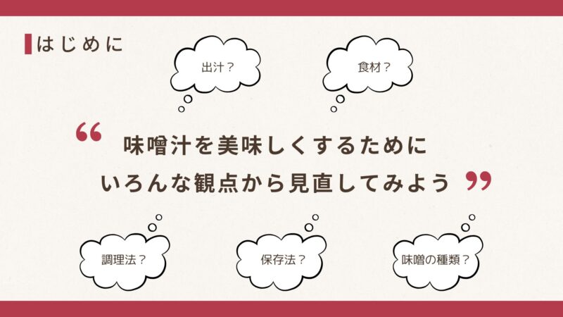ここで皆さんにはぜひご家庭の味噌汁が濃くなっていないか、確認していただきたいと思います。