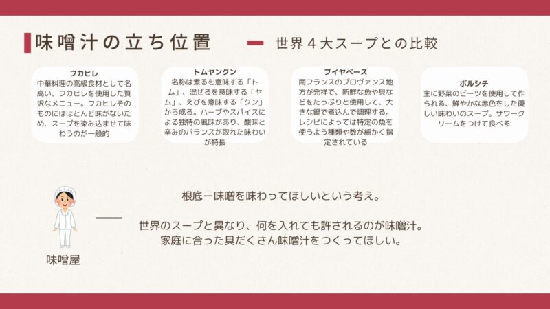 ここでは、世界的に見た味噌汁の立ち位置について解説したいと思います。